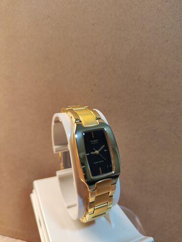 Qadın qol saatları – 2 model 1) Casio qızılı saat - Kvars mexanizm - Qızılı rəngdə metal qolbaq - Dördbucaqlı, yüngülcə səkkizguşəli kəsimli korpus - Minimalist siferblat: çubuq indekslər, kiçik t...