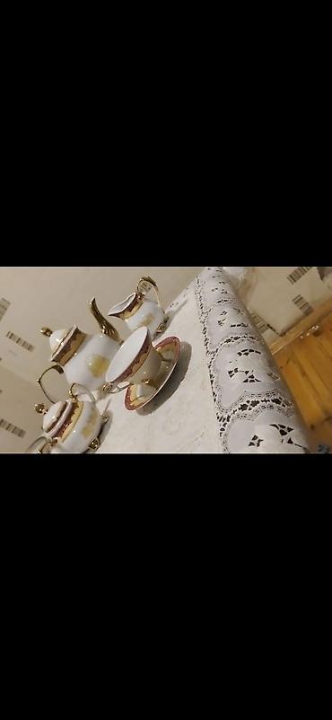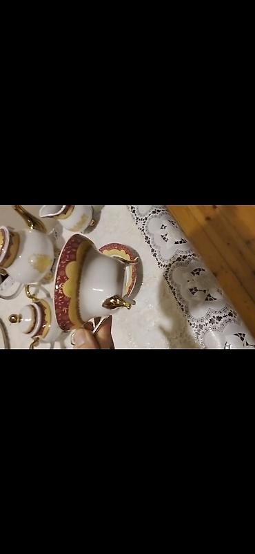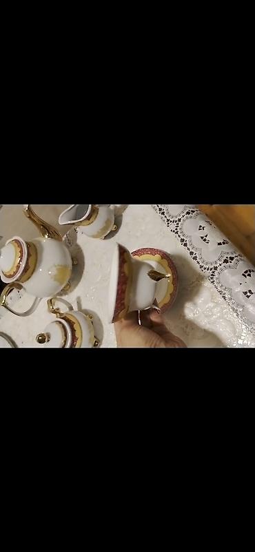 6 ədəd ayaqlı dəsti 5 ədəd nəlbəkisi var real alıcılar yazsın. Klassik dizaynlı porselen çay servisi dəsti
