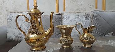 Qızılı rəngli dekorativ çay-kofe dəsti