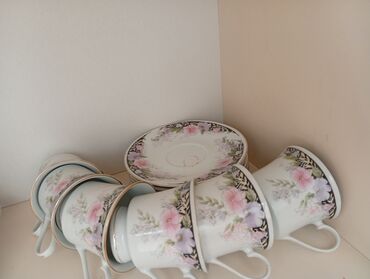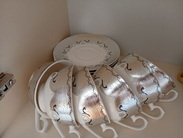 Çay dəsti, rəng - Ağ, Farfor, 6 nəfərlik, SSRİ