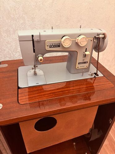 Tikiş maşını “Чайка” (masada quraşdırılan model) Xüsusiyyətlər: - Elektrik pedalı ilə idarəetmə - Masaya quraşdırılmış korpus: üst panel açılır, maşın içəridən qalxır - Əsas tikiş rejimləri üçün ö...