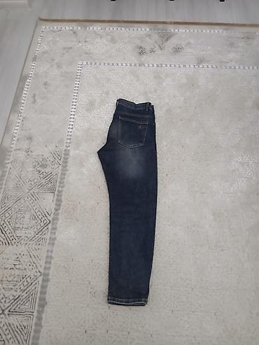 Çox az geyinilib 32 ölçü Tünd mavi rəngli cins şalvar - Klasik düz kəsim; gündəlik geyimə uyğun - Arxa tərəfdə bir ədəd paçalı cib, üzərində dekorativ tikiş i...