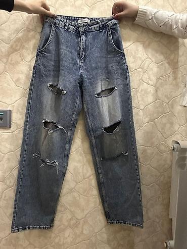 Model: düz kəsimli, “distressed/ripped” dizaynlı cins şalvar