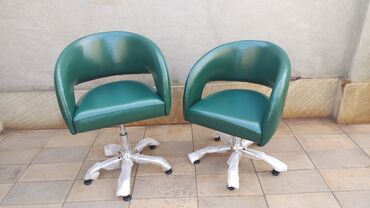 Bərbər/kosmetoloji salon üçün peşəkar kreslolar - Material: qara rəngli, hamar və təmizlənməsi asan süni dəridən oturacaq və arxalıq - Konstruksiya: möhkəm metal baza, geniş yuvarlaq diblik; sabit...