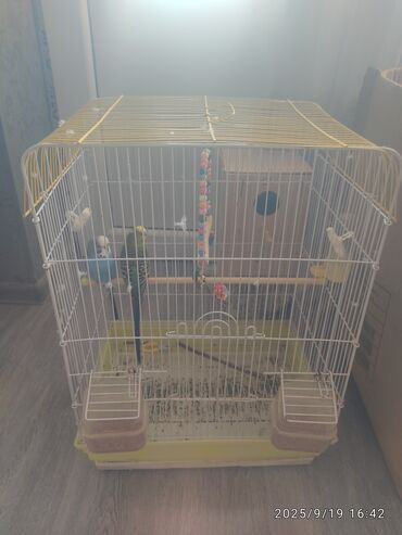 Tecılı satılır. Qəfəsdə birgə. qısa aid her şey qəfəsdə var. Dalmatin və göy rəngli iki dalğalı tutuquşu (budaq üzərində fotolarda görünür) və tam avadanlıqlı qəfəs dəsti.