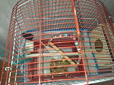- Metaldan hazırlanmış, qırmızı damlı və ağ barmaqlı oval formalı qəfəs