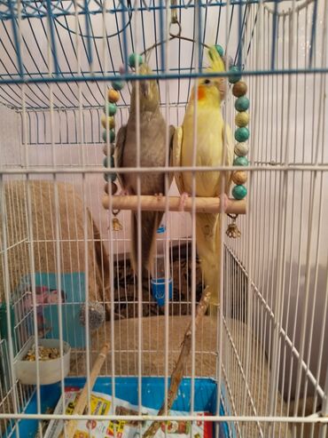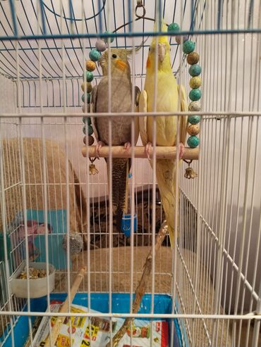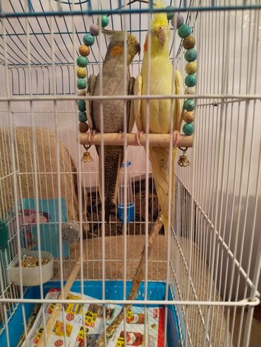 Başlıq: Papuqaylar satılır – qəfəs qarışıq, yanında yem də verilir Təsvir: - Nymfa (korella) papuqayları qəfəsdə birlikdə. - Qəfəs və aksesuarları (oturacaq budaqlar, yem qabı) daxil. - Yanında ye...30 AZN