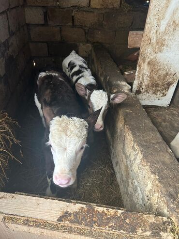 Satışda: bala buzovlar qrupu Məlumat: - Yaş: təxminən 1–3 aylıq - Cinslər: yerli südlük/ətlik tipli qarışıq (ağ-qara, qara və qəhvəyi rənglərdə) - Qulaq birkaları var, identifikasiya olunub - Qru...