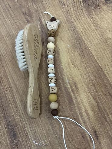 Körpə saç fırçası və adlı bəzək asqısı seti yenidir istifadə olunmayıb. Sifariş verilmişdi uşağın adı deyişildiyi üçün satilir.