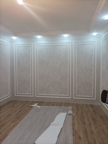 - Divar boyunca simmetrik panelləmə: MDF/plastik plintuslar və profil bordürlərlə çərçivələmə