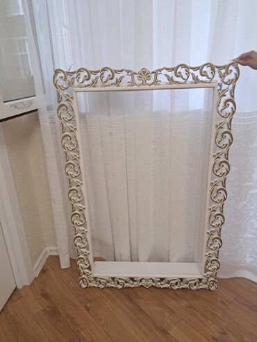- Klassik üslubda dekorativ çərçivələr: ağ rəng üzərində qızılı vurğulu oyma naxışlar. Düzbucaqlı formadadır, geniş haşiyə ilə.