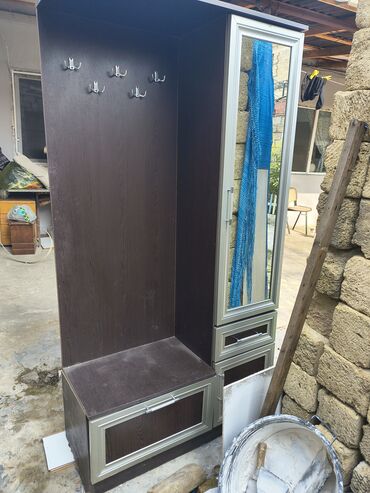 - Birləşik konstruksiya: asılqan paneli + oturacaqlı bölmə + güzgülü şkaf hissəsi