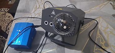 Komplekt: LED disko işıq cihazı, mavi mini lazer işıq cihazı, güc kabelləri və dayaqlar.