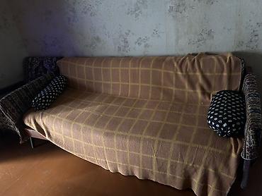 Divan – klassik taxta karkaslı, yumşaq oturacaq və bel hissəsi ilə. Üç nəfərlik ölçüdə, geniş oturma səthi var. Yan tərəflərdə naxışlı parça ilə örtülmüş armrestlər yerləşir. Üst hissəsi dama naxışlı plaadla qorunub. Komplektə iki ədəd nöqtə naxışlı silindrik dekor yastığı daxildir. Gündəlik istirahət və qonaq otağı üçün uyğun, oturmaq və uzanmaq üçün rahatlıq təmin edir. Sadə dizaynı səbəbindən müxtəlif interyerlərlə asan uyğunlaşır.