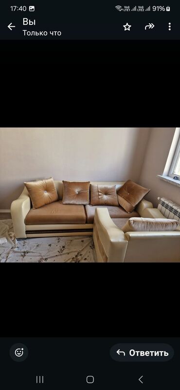 Künc divan dəsti - Klassik dizaynlı L formalı künc divan - Qızılı naxışlı, oyma dekorlu qollar və ayaqlar - Yumşaq süngərli oturacaq və kürək hissə - Eyni parça və tonda dekorativ yastıqlar dəstdə...