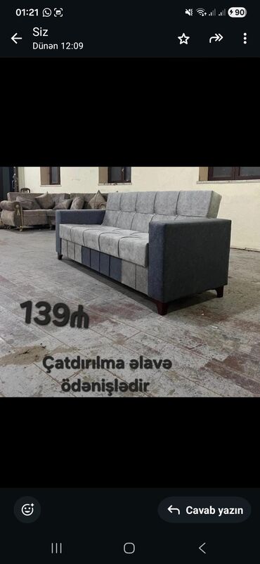 *si̇fari̇şle* hazirlanan divanlarimiz * *qiymet 179 man ✨rəng seçimi var ✨ölçü uzunluq 2m10sm ✨ açılan, bazali ✨yastıq cütü 10 manat ✨ çatdırılma ödənişili