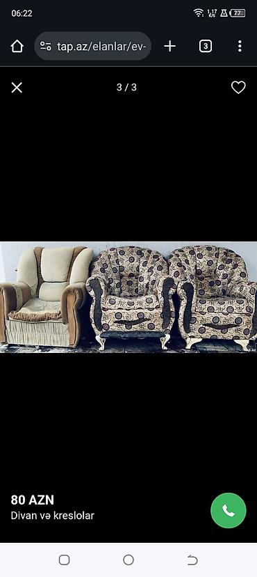 - Alternativ komplekt: krem-qəhvəyi məxməri/parça üzlüklə olan eyni tipli divan və kreslolar da mövcuddur (şəkillərdə)