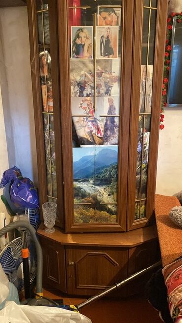 - Künc vitrini: taxta rəngli korpus, şüşə qapılar və şaquli metal tutacaqlar. Künc yerləşimi sayəsində məkanı səmərəli istifadə etməyə imkan verir. Alt hissədə qapalı dolab bölməsi, üst vitrin hissəsində dekorativ əşyalar, kitablar və kolleksiyalar üçün şüşəli rəflər. Klassik üslub, zərif çərçivələr.