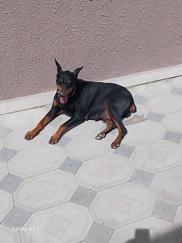 Saf qanlı Doberman Pinscher – qara-qəhvəyi rəngdə, güclü bədən quruluşu və atletik görünüş. Aşağıdakı xüsusiyyətlərə malikdir: - Cins: Doberman Pinscher - Rəng: qara üstlük, pas-qəhvəyi işarələr - ...