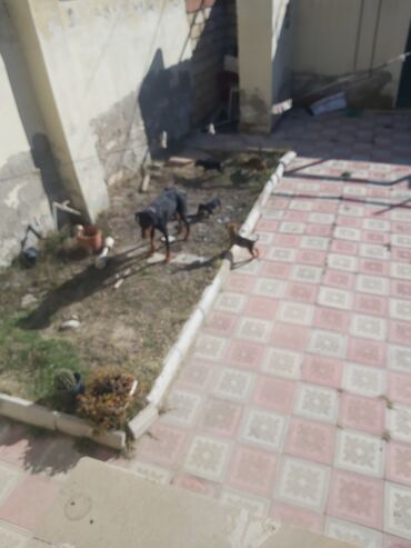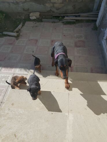 Doberman Pinscher cinsli it 2 eded biri diwi biri erkek cut wekilde satilir 600 azn tek tek isdeyen olarsa 300-300 - Rəng: qara-qəhvəyi (tan işarələr) - Qulaqlar dik, atletik və çevik bədən q...