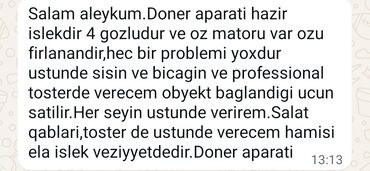 Satılır: dönər və fast-food avadanlığı komplekti Tərkib: - Elektrik