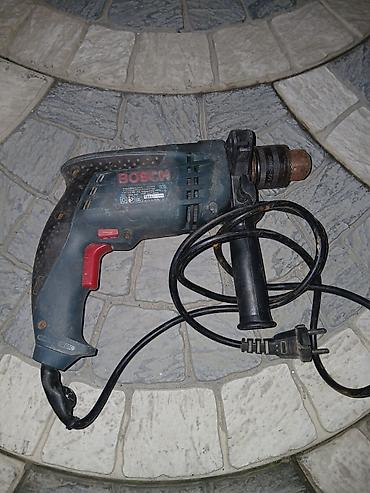 - 1) BOSCH zərbəli matkap. Korpus üzərində BOSCH loqosu və texniki nişanlamalar mövcuddur. Yan tutacaqla gəlir, standart 220V AC şəbəkə qoşulması üçün ikili avro fişlidir. Mandren açarı ilə sıxılan klassik dişli mandren tipidir (açar mandren). Korpusda havalandırma pəncərələri, istiqamət dəyişmə düyməsi və tətik tipli işə salma mövcuddur. Şnurla qoşulur.