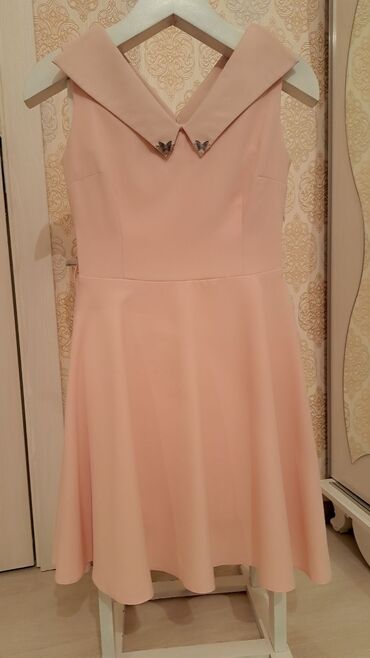 Gümüşü rəngdə atlas parçaladan zərif axıcı don. - Model: A-kəsim, dizə yaxın uzunluq (şəkillərə əsasən), alt kənarında atlas büzmə və mesh dekor haşı. - Üst hissə: açıq sinə kəsimi, yüngül V-oyun...