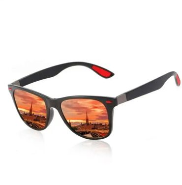 Qara rəngdə, düzbucaqlı formalı günəş eynəyi. Eynəyin qolları tünd qırmızı rəngdədir. Bu eynəklər günəş şüalarından qorunmaq üçün idealdır və həm qadınlar, həm də kişilər tərəfindən istifadə edilə ...
