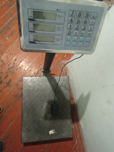 Elektron platforma tərəzi - Platforma ölçüsü: metal, səthində naxışlı sürüşməyə qarşı lövhə - İdarəetmə paneli: 3 ayrı LCD göstərici - Kütlə (kg) - Qiymət (qrn/kg) - Dəyər (qrn) - Klaviatura...