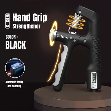 Tənzimlənən güc məşqi üçün əl tutacağı (hand gripper) - Tək əllə sıxma məşqləri üçün yaylı konstruksiya - Üst hissədə fırlanan düymə ilə müqavimət dərəcəsi tənzimlənir (göstərici şkalası üzərində ...