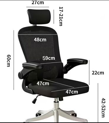 - Kreslonun ümumi oturacaq hündürlüyü: 42–52 sm (qaldırıcı mexanizm)