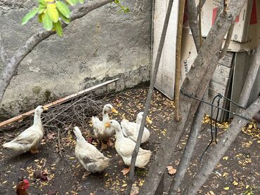 - Həyətdə doğal yemlərlə saxlanılan ağ rəngli ördəklər.