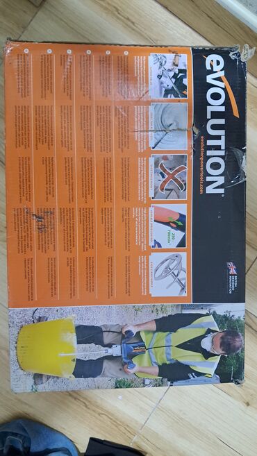 Qutunun üzərində marka: Evolution. Model qutuda “evolutionpowertools.com” resursu ilə göstərilir.