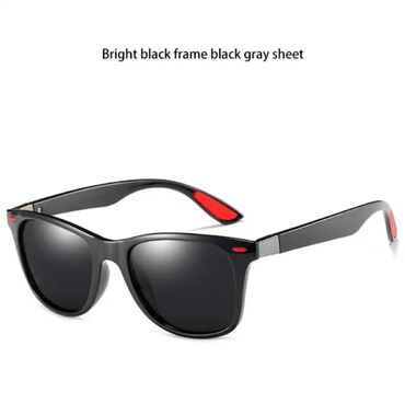 Qara rəngdə, düzbucaqlı formalı günəş eynəyi. Eynəyin qolları tünd qırmızı rəngdədir. Bu eynəklər günəş şüalarından qorunmaq üçün idealdır və həm qadınlar, həm də kişilər tərəfindən istifadə edilə ...