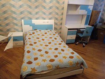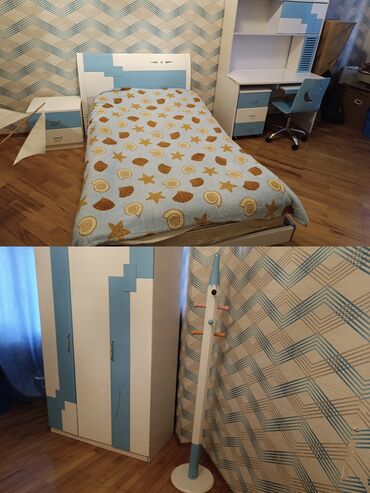 Uşaq otağı mebel dəsti Tərkibi: - Tək nəfərlik uşaq çarpayısı: ağ–lacivərd rənglər, başlıqlı model. Alt hissədə 2 geniş çekmece saxlanma bölməsi. Üstündə uşaq mövzulu yumşaq örtü. - Beşik-komod: k...