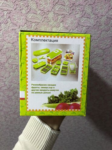 Meyvə, tərəvəz, pendir və digər məhsulları bərabər parçalarla doğramaq üçün uyğun, gündəlik istifadəyə əlverişli çoxfunksiyalı mətbəx köməkçisi. Rəngi: yaşıl.