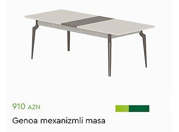 Genoa mexanizmli masa - Dizayn: Modern - Rəng: Kumtaşı parlaq - Material: DSP, MDF, metal profil - Ayaqlar: Metal - Xüsusiyyət: Uzadılan mexanizmli masa - Üstünlüklər: • İnsan sağlamlığına zərər...