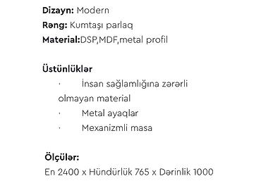 - Ölçülər: En 2400 x Hündürlük 765 x Dərinlik 1000 (mm)