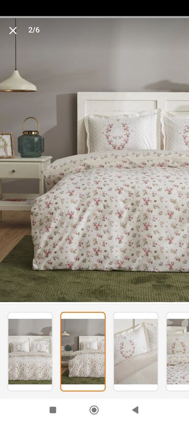 Yataq dəsti və yorğan komplekti - Komplektə daxildir: 1 ədəd böyük yorğan (boz rəngli, çiçək naxışlı), 1 ədəd yastıq, 1 dəst yataq dəsti parçaları (çarşaf, örtük və yastıq üzləri – şəkildə göstəri...