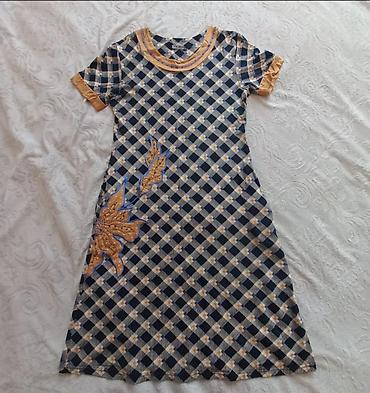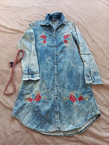 La Sibella qadın tunik/kofta-kleid - Rəng: tünd göy - Ölçü: XL (etiketdə 48) - Model: polo yaxalı, 3 düyməli ön bənd - Uzunluq: dizə yaxın, yanlara kiçik şaquli kəsiklər - Detallar: yaxa, qolların...