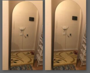 Böyük ölçülü döşəmə güzgüsü Sifarişlə yiğılmışdır - Model: Öz dayağı olan, tək dayaqlı (easel tipli) döşəmə güzgüsü - Karkas: Ağ rəngli nazik taxta çərçivə, minimal dizayn - Quruluş: Arxa hissədə...