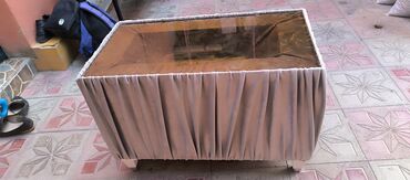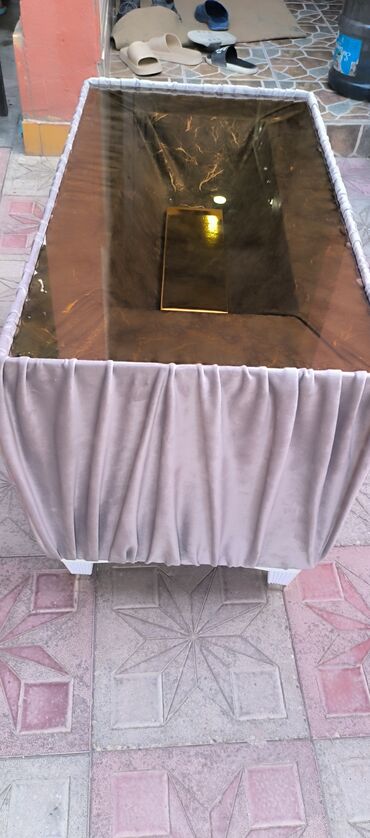 Qəhvə/çay masası – dekorativ güzgü effektli üst və parça üzlü korpus