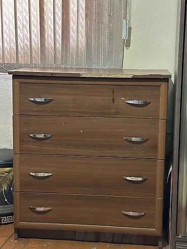 Palıd ağacından komod – 4 çekməcəli, klassik üslub, əl işləməsidir. - Material: palıd ağacından, mat qəhvəyi rəngli örtük - Üslub: klassik/retro, yan tərəflərdə oymalı dekor - Furnitura: metal, g...