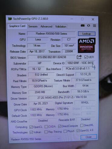 🔹 Видеокарта: Radeon RX 550 2GB