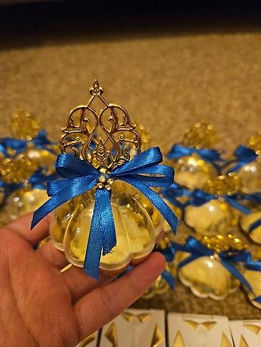 Tədbir xatirəlikləri və hədiyyəlik dəst - Qonaqlara paylamaq üçün şık qutular: ağ-qızılı “smokin” dizaynlı, üzərində “MaşaAllah” və “Kiçik Toyun Mübarək” yazıları. İçlik üçün uyğundur (şirniyyat, ...