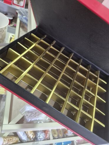 - Daxili bölmələr: qızılı rəngdə çıxarıla bilən şəbəkə (xırda şirniyyatlar, trüflər, draje, lokum və s. üçün)