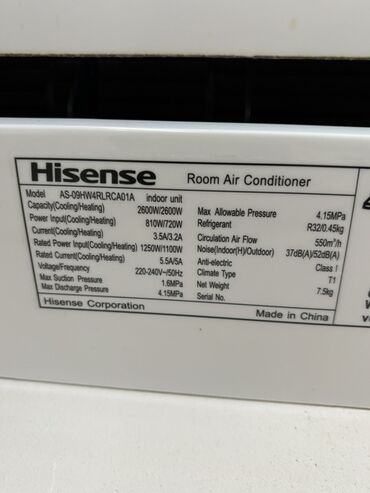 Hisense split kondisioner dəsti Model: AS-09HR4SYDTD (daxili blok etiketində göstərilib) Komplekt: 2 ədəd xarici blok + 2 ədəd divara quraşdırılan daxili blok Texniki göstəricilər (daxili blok): ...