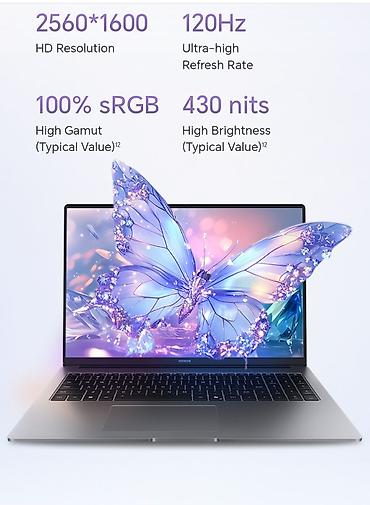 HONOR noutbuk + aksesuarlar Texniki xüsusiyyətlər: - Model: HONOR (sistem məlumatında “System Manufacturer: HONOR”, “Model: BRN‑FX8K”) - Ekran: 15.6" təxmini (incə çərçivəli) - Prosessor: 12-ci nə...