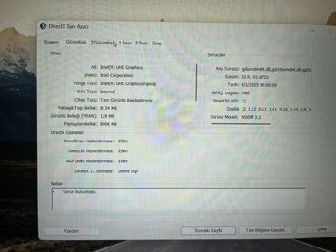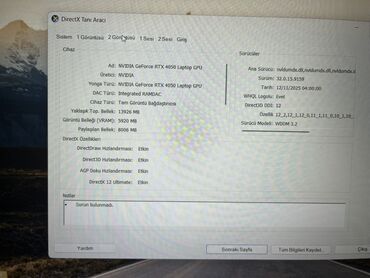 - Yaddaş: (DXDiagda yalnız fayl səhifəsi görünür) SSD ilə sürətli işə düşmə və yüklənmə