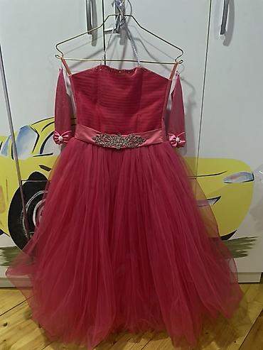 7-8 yaş Uşaq paltarı – fuksiya rəng 1dəfə geyinilib təzə kimidir. - Model: qısa, ətəyi həcimli “princess” kəsim - Parça: atlas/saten görünüşlü, parlaq tekstura - Rəng: canlı fuksiya (çəhrayı-bənöv...